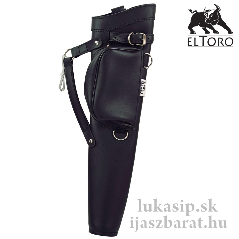 Kiváló fekete tegez műbőrből, oldalsó zsebbel.